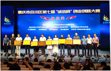 2018年6月13日,重庆市合川区第七届“诚信杯”创业创新大赛颁奖仪式在重庆师范大学涉外商贸学院小剧场隆重举行。重庆市就业服务管理局局长李为民、市人力资源和社会保障局就业和失业保险处处长邓敦、市人才交流中心主任宋成、市就业服务管理局副局长张橙华、合川区委常委、区委组织部部长张才明、区人大常委会副主任柳川、区人民政府副区长桑子陶、各镇街、在合高校、创业孵化基地,风投企业以及大赛组委会成员单位相关部门负责人等出席了此次活动。